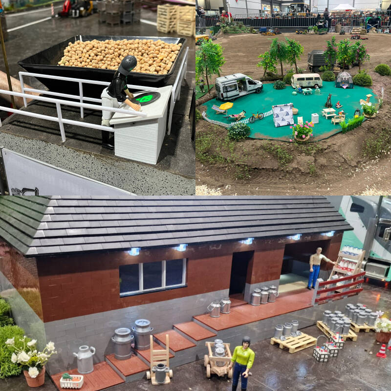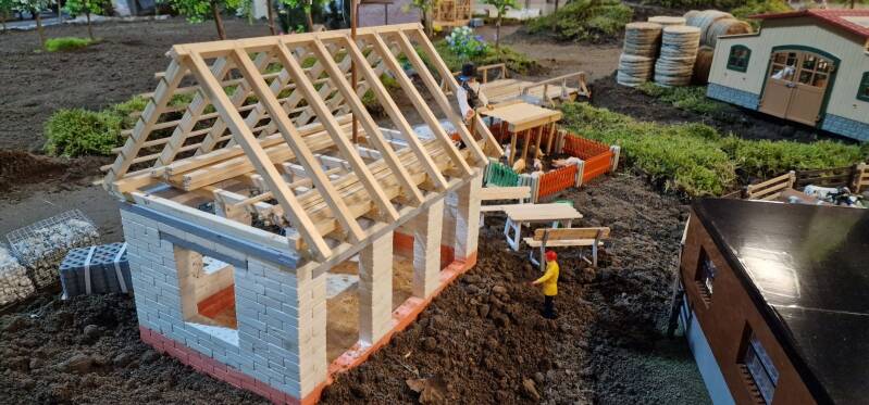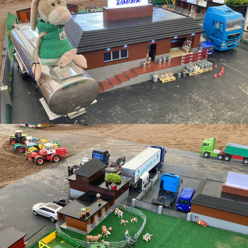 Wir hatten tolles Wetter einen prima Platz und viele nette Besucher. Ganz klein haben wir angefangen, mit einem Anhänger voll Sand mit Baumaschinen und einer Logistikfläche für etwas Staplerbetrieb. Weitere Modelle für Straßen haben wir natürlich noch mit gehabt und diese ausgestellt.