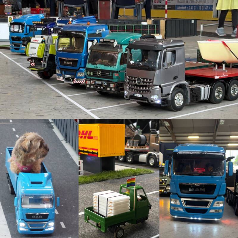 Dabei waren die "IG Modellbau Hansestadt Rostock" mit Schiffen, Flugdrohnen, sowie einigen Fahrzeugen. Besonders hat uns auch der Besuch der Gastfahrer vom RC Parcours Schönberg Holm e.V. gefallen, die mit Ihrer Logistikfläche verschiedensten Staplern und Ladung angereist waren.